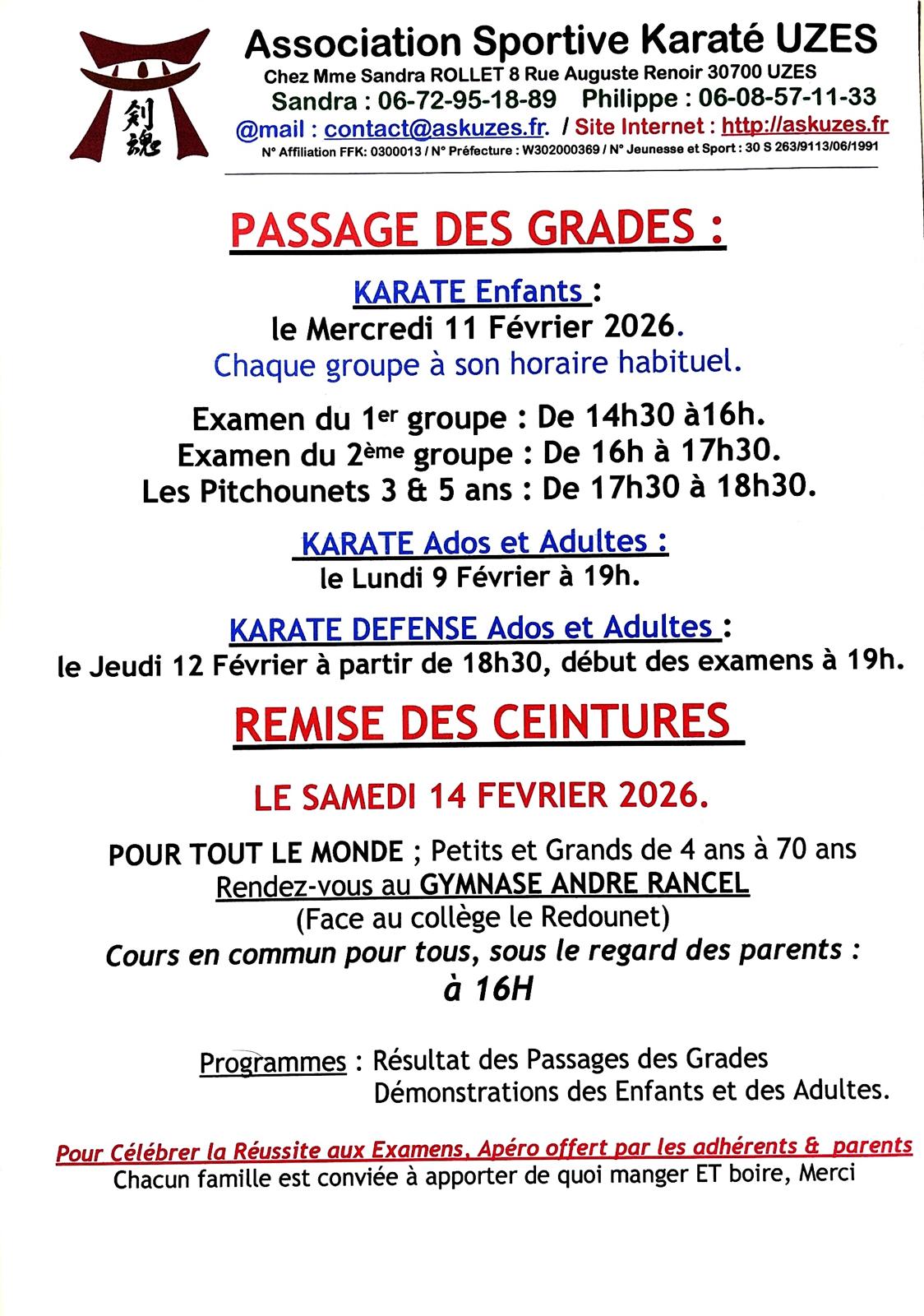 Samedi Dimanche au dojo selon calendrier: préparation aux Grades